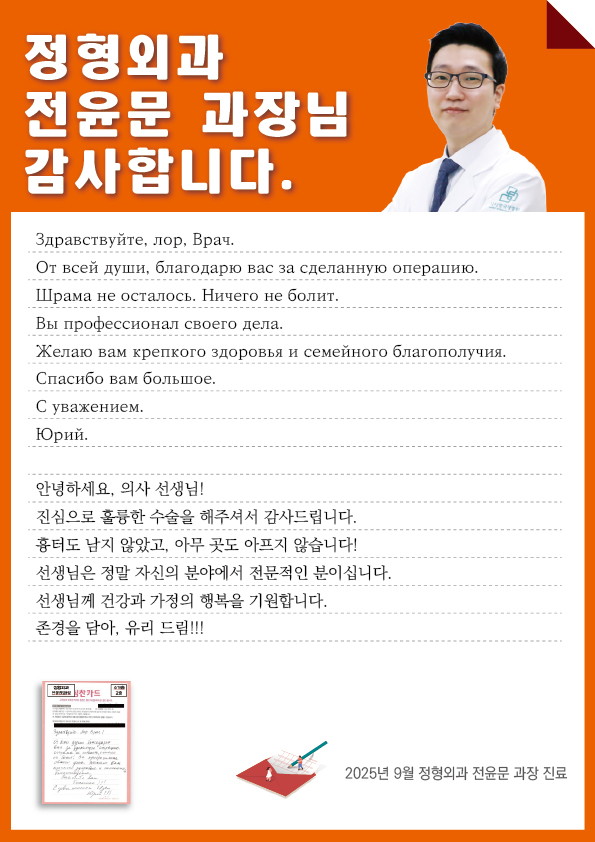 [칭찬카드] 정형외과 전윤문 과장님 및 임직원 여러분들 감사합니다.