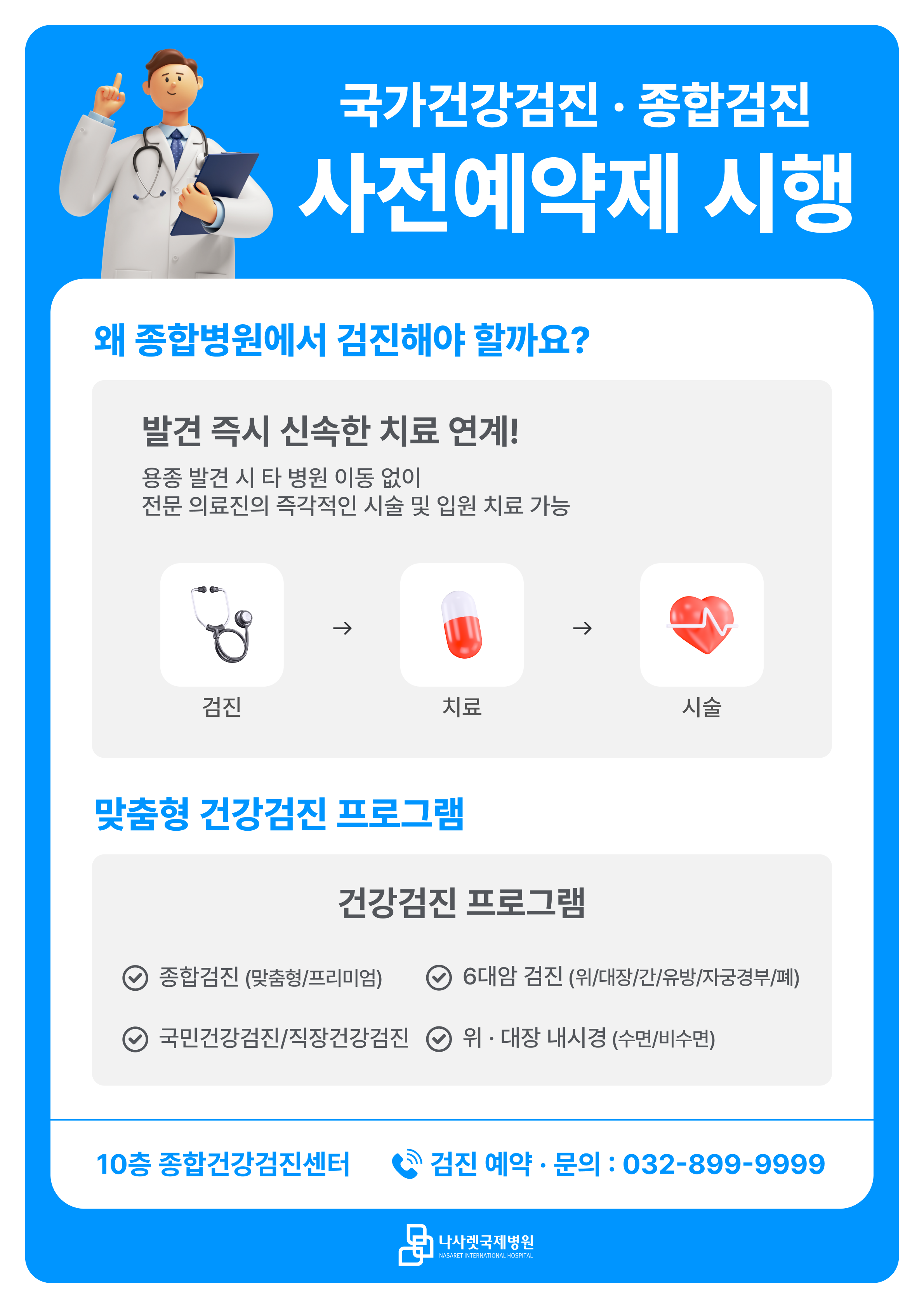 [나사렛국제병원] 국가건강검진,종합검진 사전예약제 시행